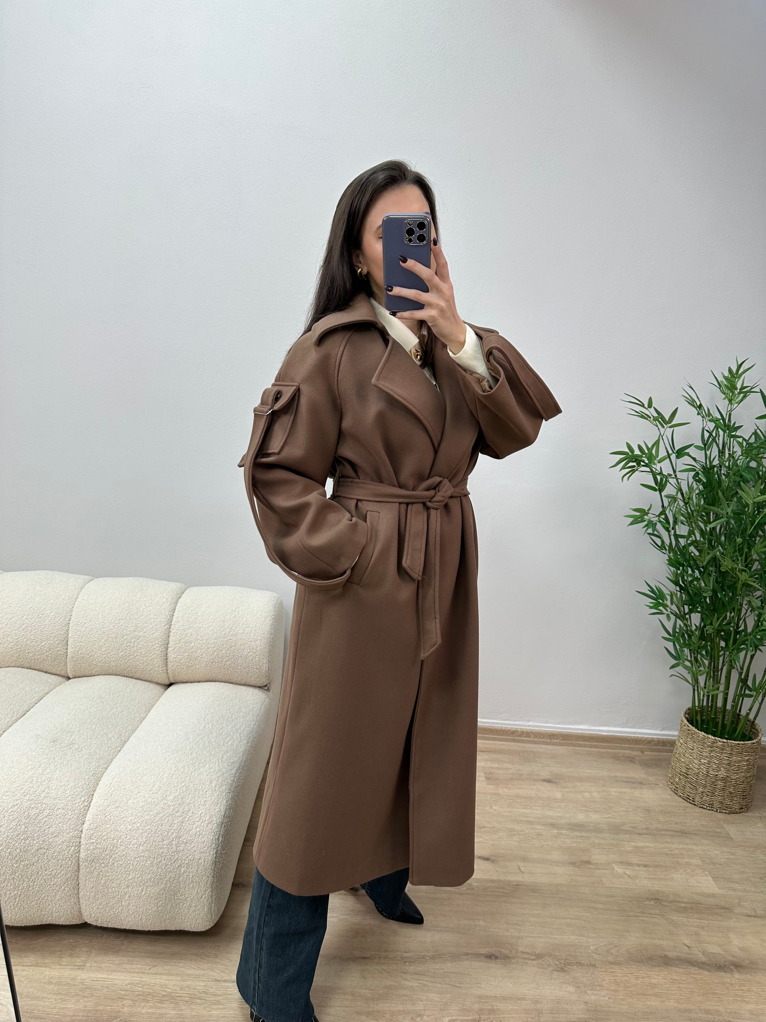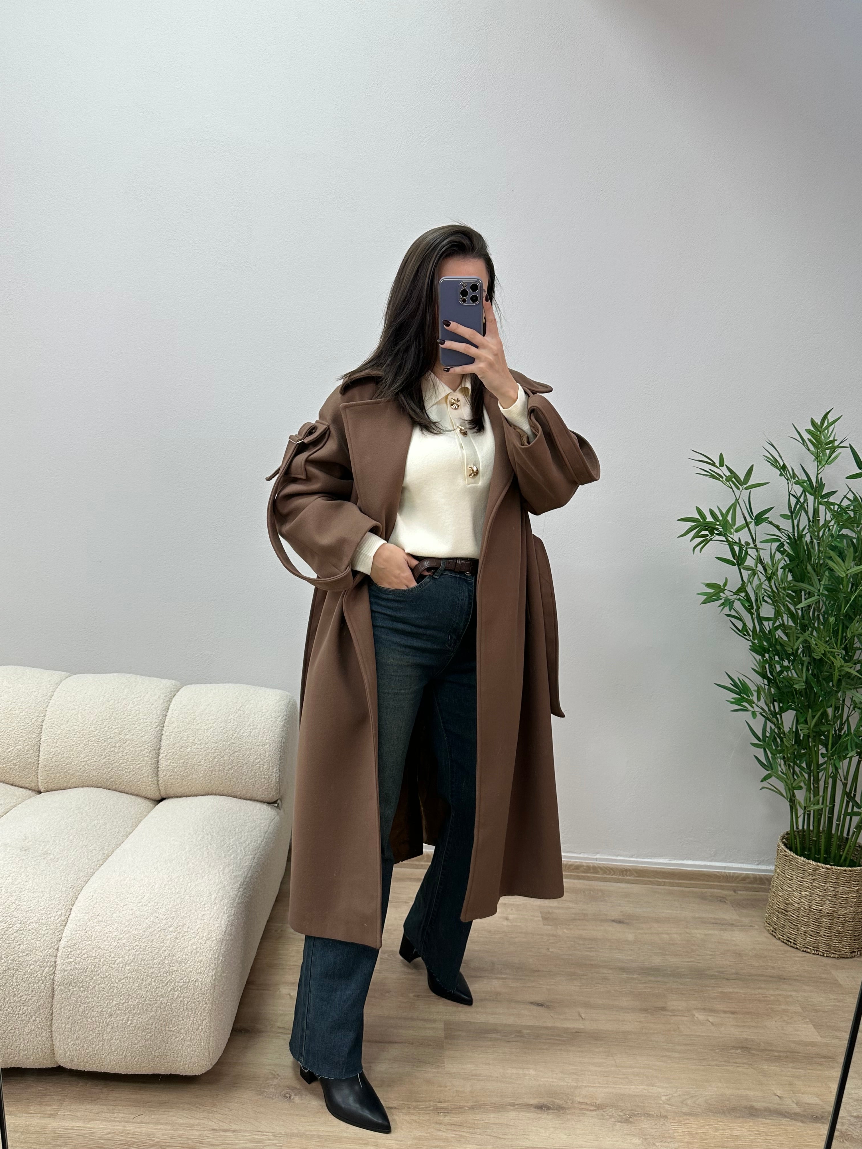 Pallto kafe oversize me rrip ne bel