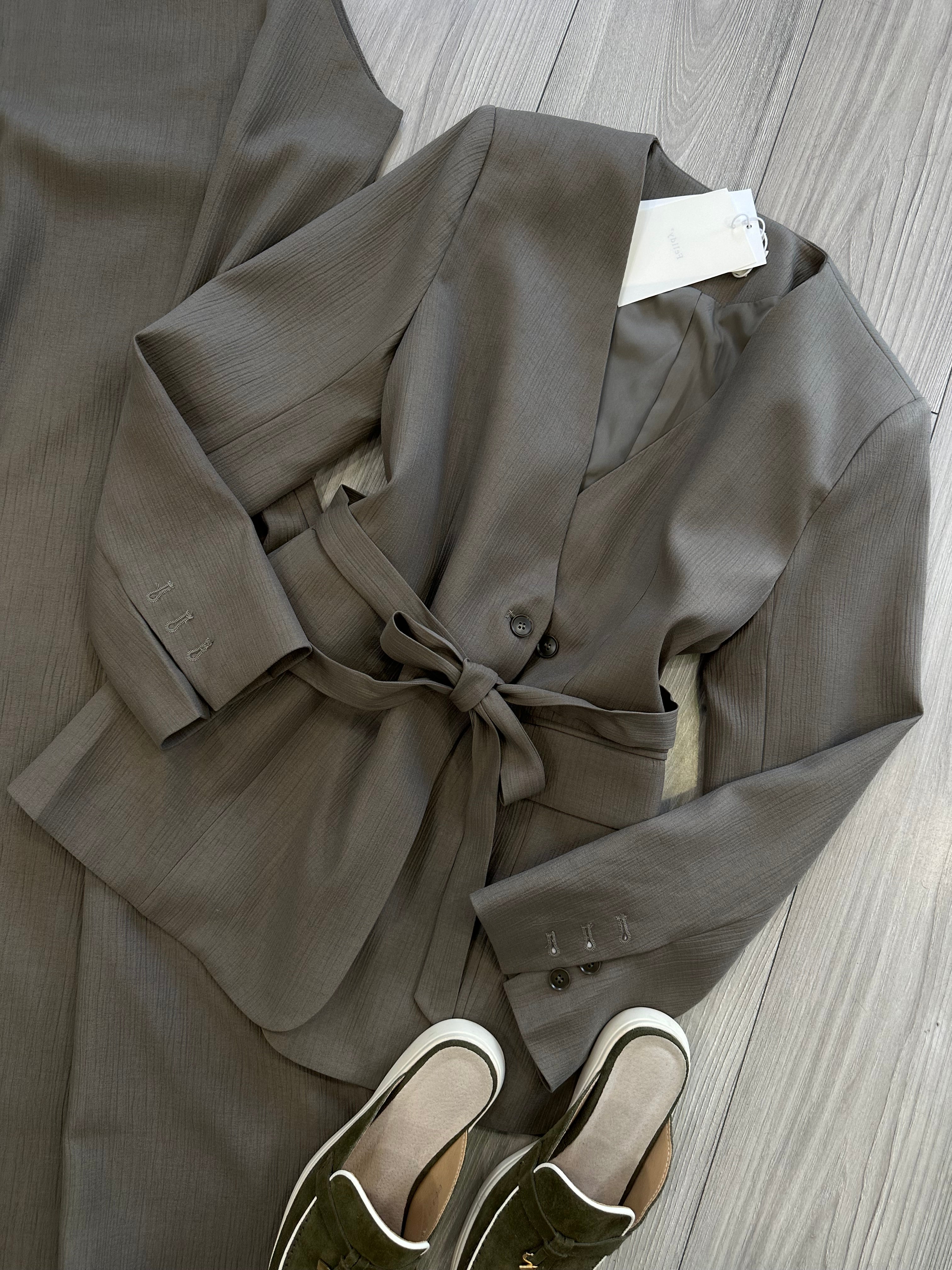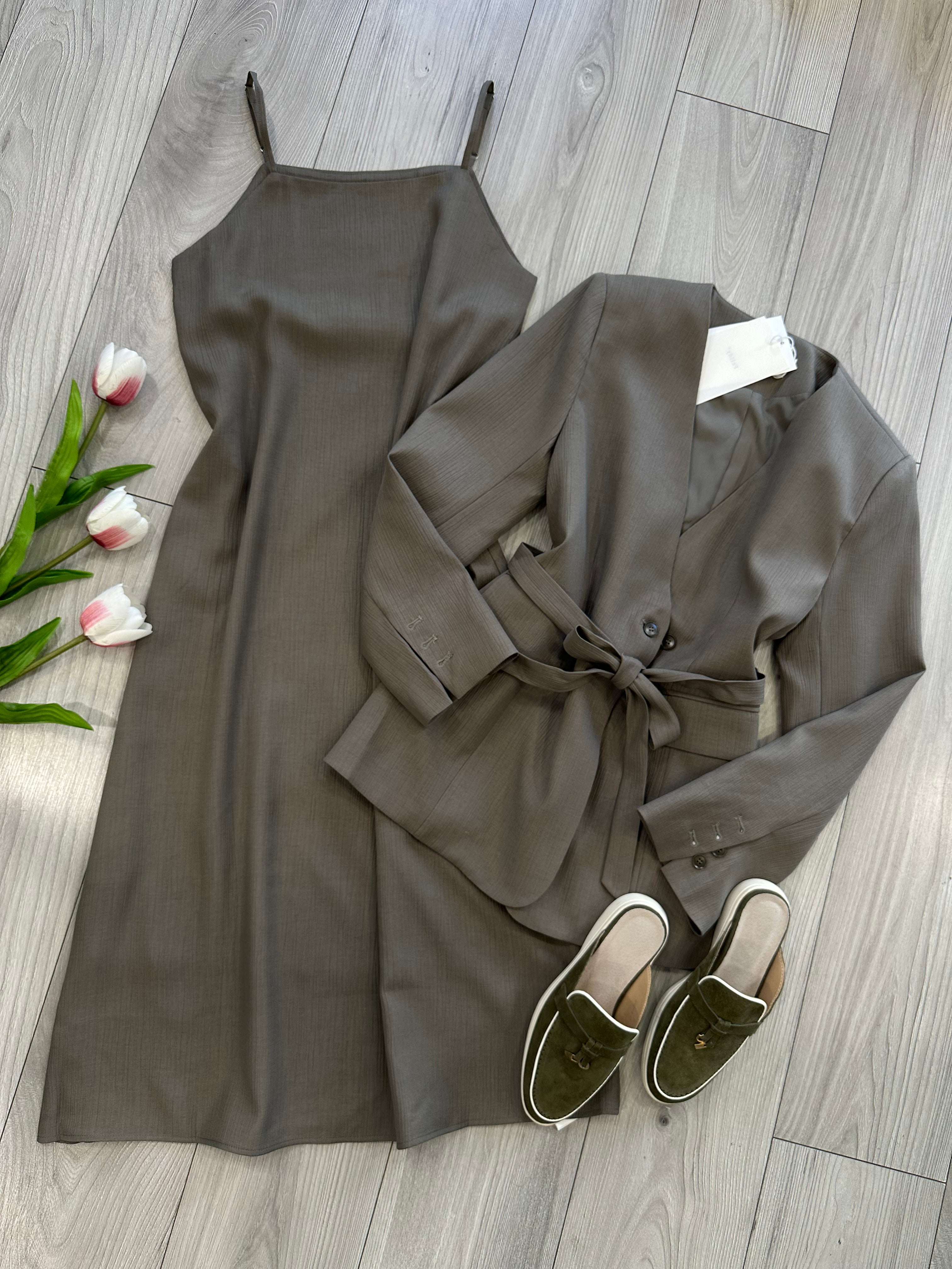 Kostum i perbere nga fustan i gjate dhe xhakete me rrip ne bel