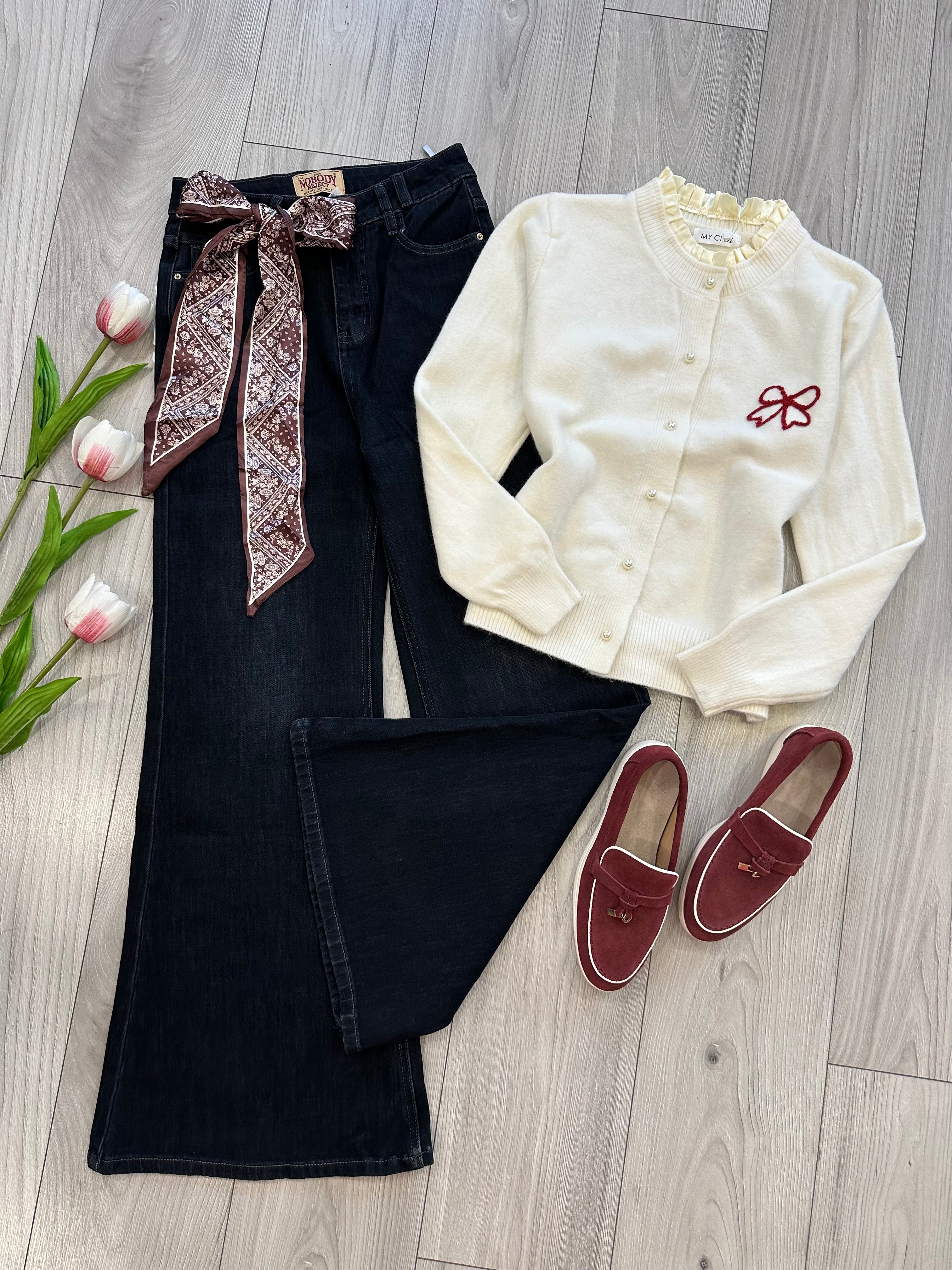 Pulover ngjyre pana me nje fjonge vishnje . Jake te bukur dhe kopsa perpara