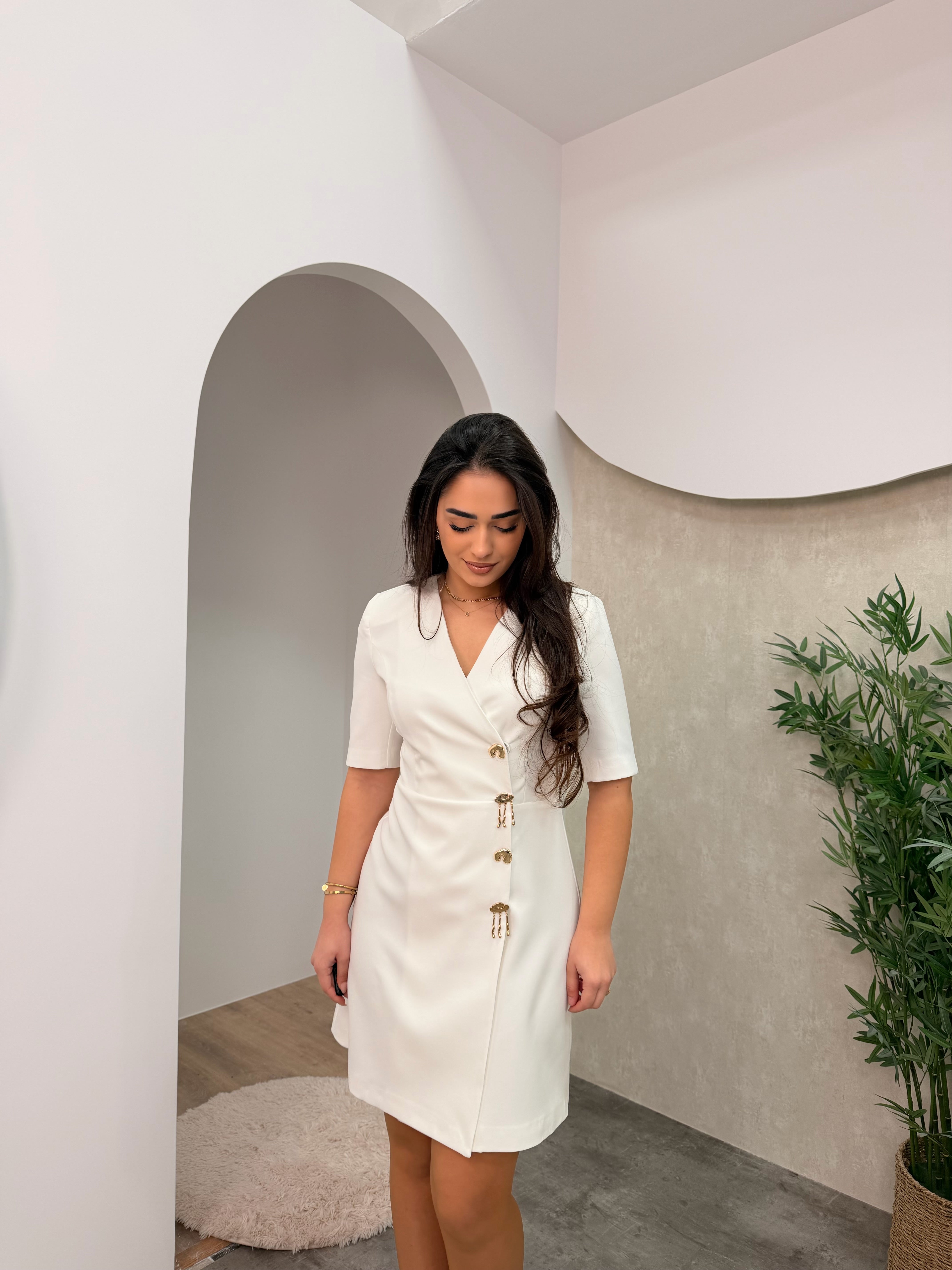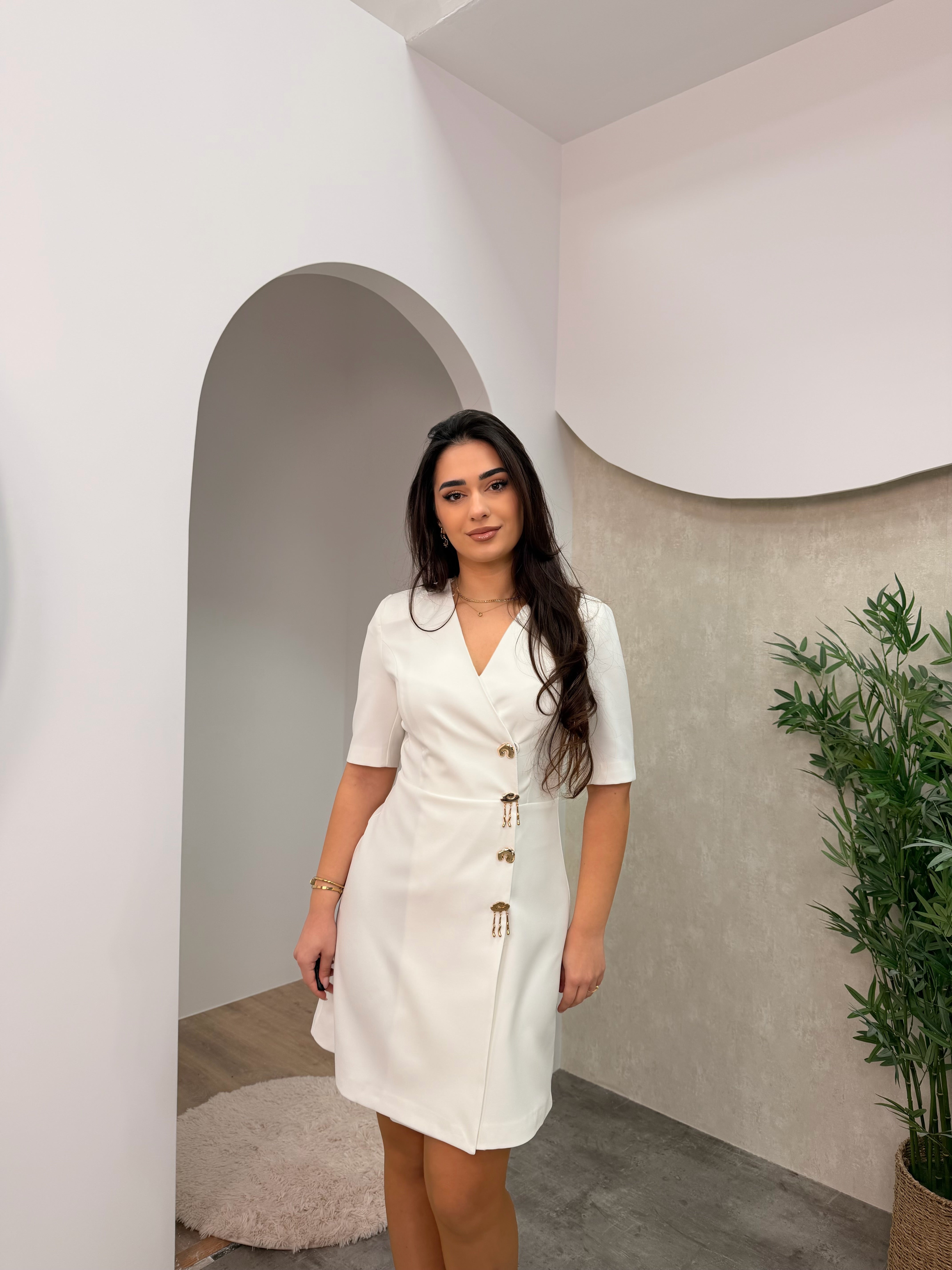 Fustan klasik i bardhe ne forme xhakete, me mberthesa ne formen e percinave kaq te vecanta đź’•