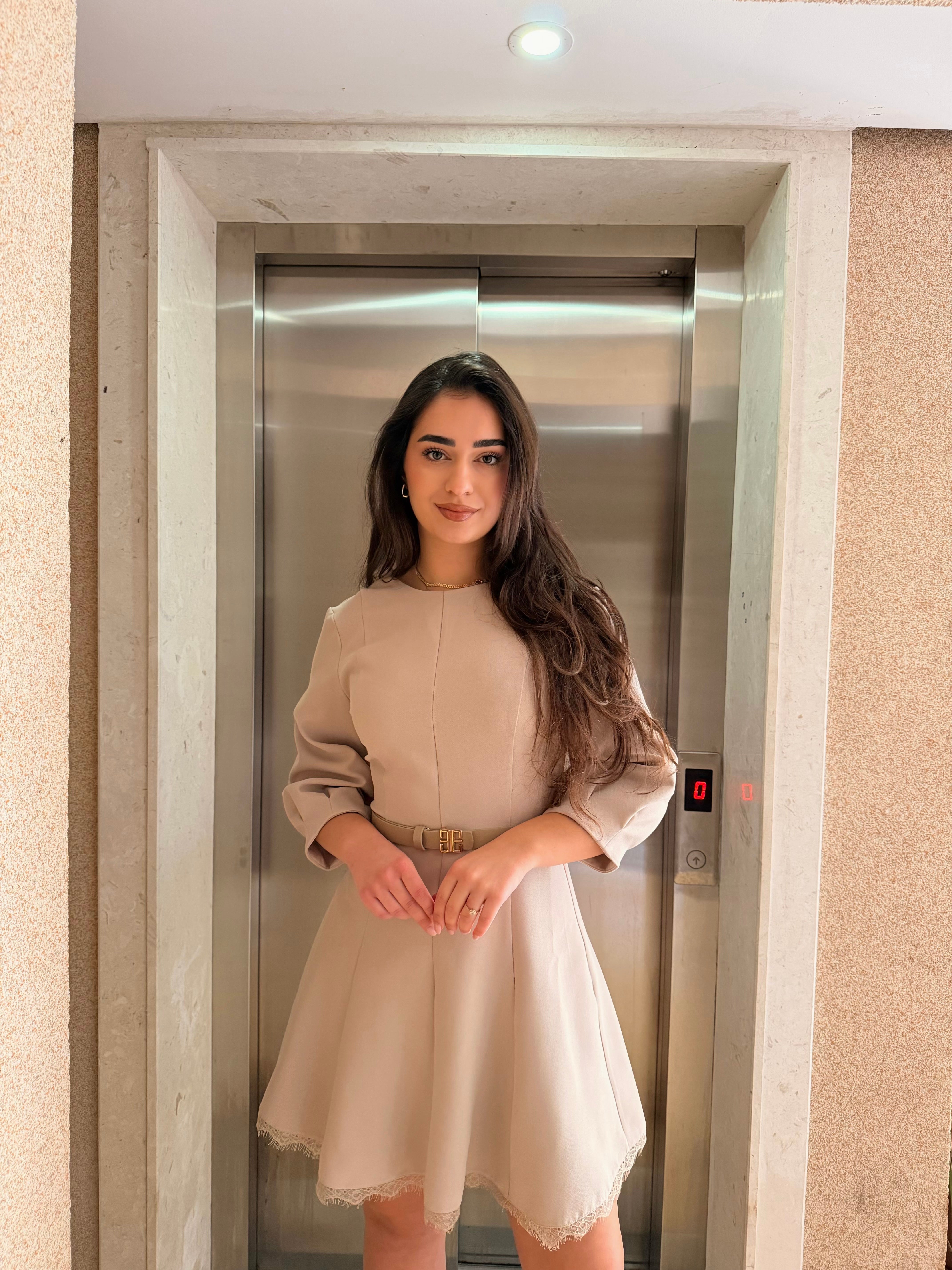 Fustan i shkurter me rrip ne bel dhe tyl ne pjesen e fundit 🌸