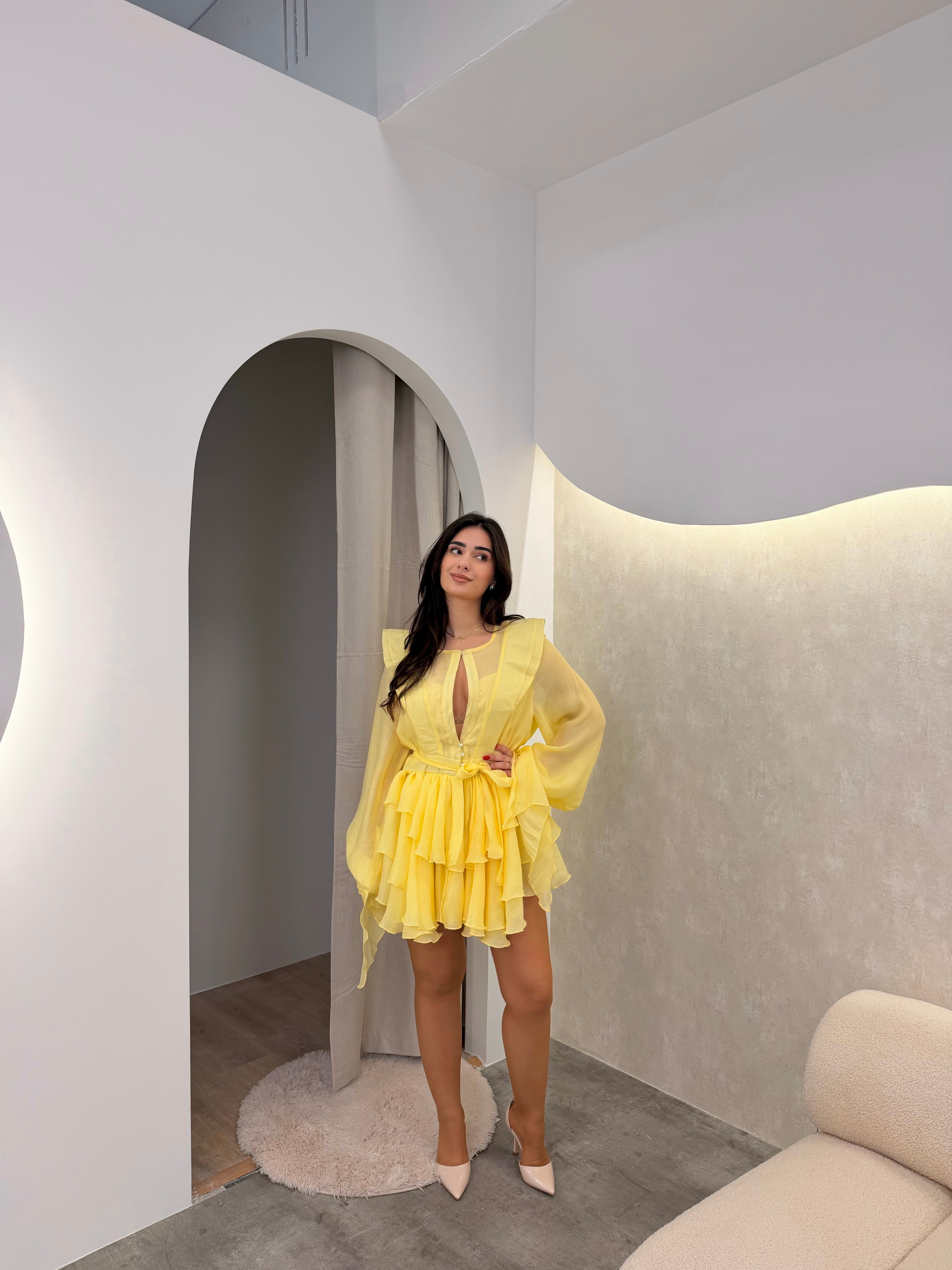 Fustan i shkurter ne ngjyre te verdhe 🌸