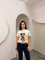 Nje T-shirt me lule blu, gjatesi normale dhe prerje normale